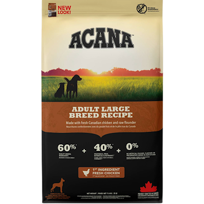 - Acana Large Breed hundmat för vuxna hundar - Spannmålsfritt hundfoder fullspäckat med färskt kött från frigående kyckling, vildfångad flundra, ägg….