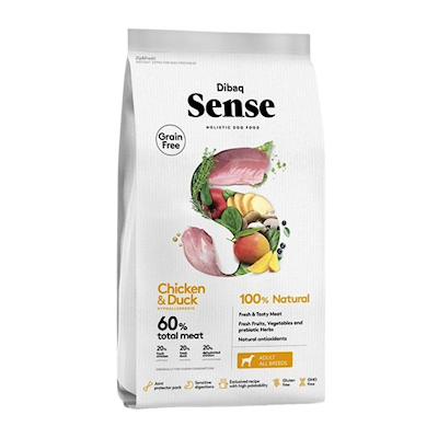 Dibaq Sense Dog Adult Chicken & Duck All Breeds är ett komplett och spannmålsfritt torrfoder för vuxna hundar av alla raser och storlekar.