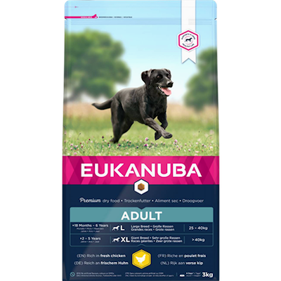 - Eukanuba Large Breed Normal Activity hundfoder är ett helfoder för stora hundraser över 25kg.