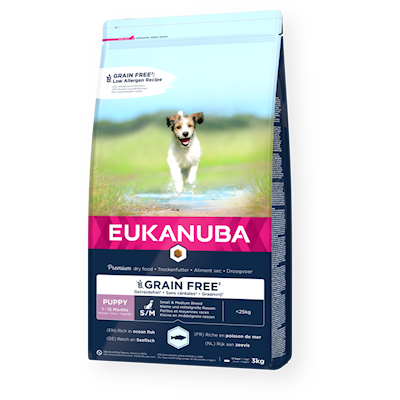 - Eukanuba Dog Grain Free Puppy & Junior Small/Medium.