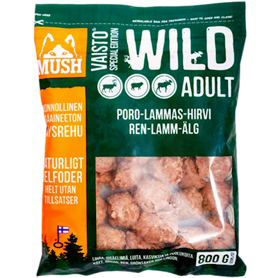 Mush Vaisto Wild är gjort på djur som inte ätit processat foder & passar speciellt bra till hundar med födoämnesallergi mot vanligare proteiner.