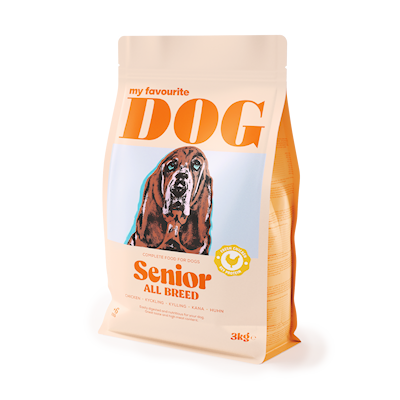 Letar du efter ett foder till din äldre, mindre aktiva hund? I så fall kan My favourite DOG Senior vara svaret! Ett komplett foder speciellt utformat för äldre, mindre aktiva hundar alternativt vuxna hundar från 1 år som har lätt att lägga på hullet.