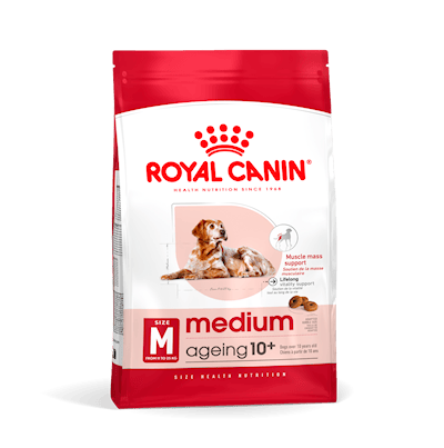 - Royal Canin® Medium Ageing 10+ torrfoder är lämpligt för medelstora hundar som väger mellan 11 och 25 kg och är över 10 år.