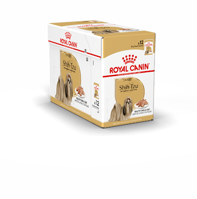 - Royal Canin® Shih Tzu våtfoder är ett helfoder för vuxna hundar som kan erbjudas som omväxling till Royal Canin® Shih Tzu Adult torrfoder.