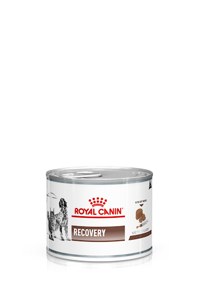 Royal Canin® Recovery Mousse är en skräddarsydd kost speciellt utvecklad för att ge stöd till katter och hundar som återhämtar sig efter operation eller sjukdom.
