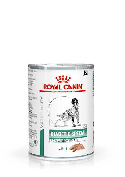- Royal Canin Veterinary Diets Wet Weight Management Diabetic Special Low Carbohydrate Loaf veterinärmat för hund med diabetes.