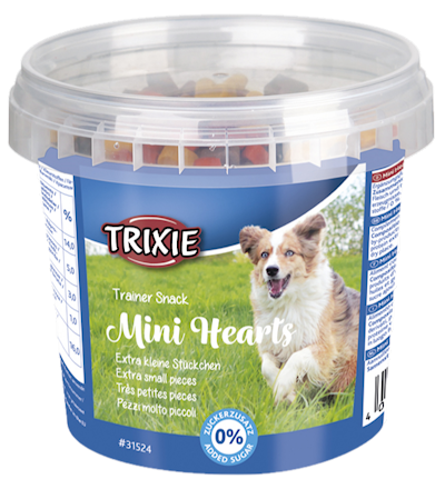 Trixie Snack Mini Hearts fettsnålt hundgodis med lax, kyckling och lamm.